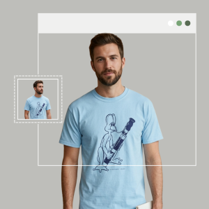 Blue t-shirt, 50/50 blend, with our trademark, “Elmer,” the bassoon-playing frog. Very reasonably priced!
